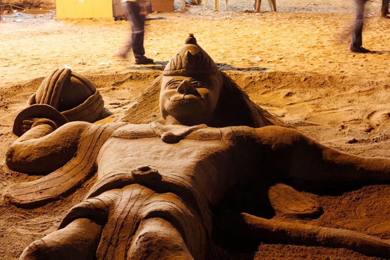 We have all made sand castles as kids on a fun day in the beach. And more so if the beach is close by. The Indian peninsula boasts of a coast of over 7500 kilometres, so it would be strange if you meet an Indian who doesn’t love the beach. While Rangoli’s account for a major part of India’s affection with sand based art, there are several artists who like to challenge their boundaries by creating amazing art on the beach itself. However, I half expected to see a Hanuman on one of the most crowded beaches in Mumbai, Juhu beach, that too at 8 in the night! Quite a sight, and it would’ve been unfair if I didn’t share this picture with the world!