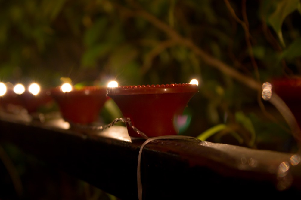 Look at the picture closely. What do you see? Can you tell me what the lamps are made of and how they have been illuminated?