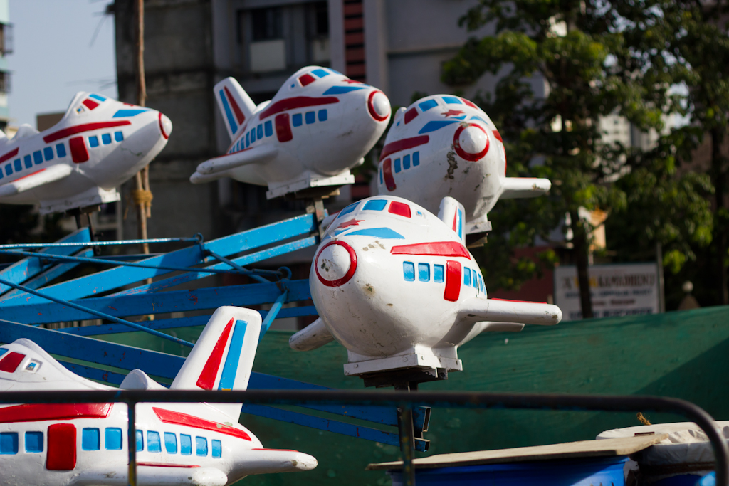 Life as a child is full of hopes and dreams. It’s that time of one’s life where you know what you want to be when you grow up, but don’t have to worry about how to get there. This shot comes from a local fair, one of the rides that make you “fly”. It reminds me of how we have fun flying up and down in a make-believe plane, and still are raring to go for another round!