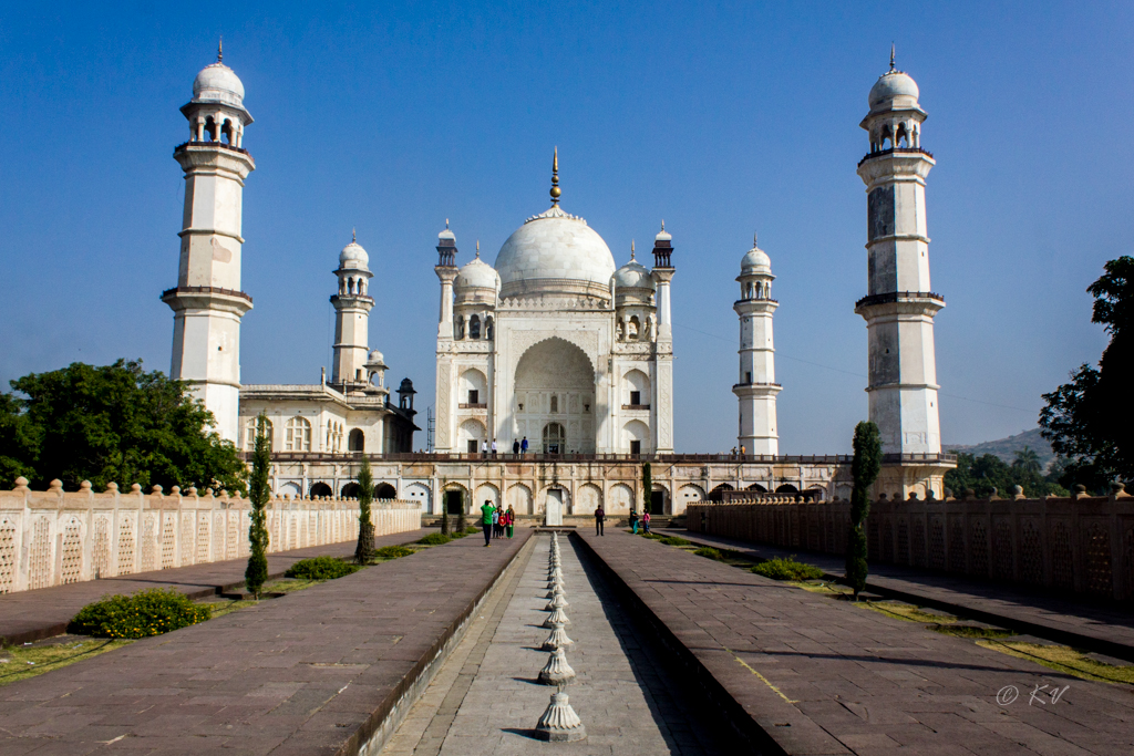 The Bibi Ka Maqbara (Mother’s Tomb) located in Aurangabad, India was built by Mughal emperor Aurangzeb’s son Azam Shah for his mother Dilras Banu Begum (known as Rabia-ud-Daurani). Known as Dakkani Taj Mahal (Taj of the Deccan). The monument was designed and erected by Ata-ullah and Hanspat Rai; Ata-ullah was the son of Ustad Ahmad Lahauri, the principal designer of the Taj Mahal. The Taj Mahal is the mausoleum of Dilras’ mother-in-law, Empress Mumtaz Mahal and Aurangzeb is buried a few kilometers away from her mausoleum in Khuldabad.