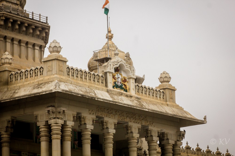 The front of the Vidhan Soudha building reads “Government’s Work is God’s Work,” (sarkarada kelasa devara kelasa in Kannada). The cost of construction in the 1950s time was just 17.5 million rupees, but now, the annual maintenance alone costs about 20 million rupees. The building is illuminated on Sundays and public holidays.