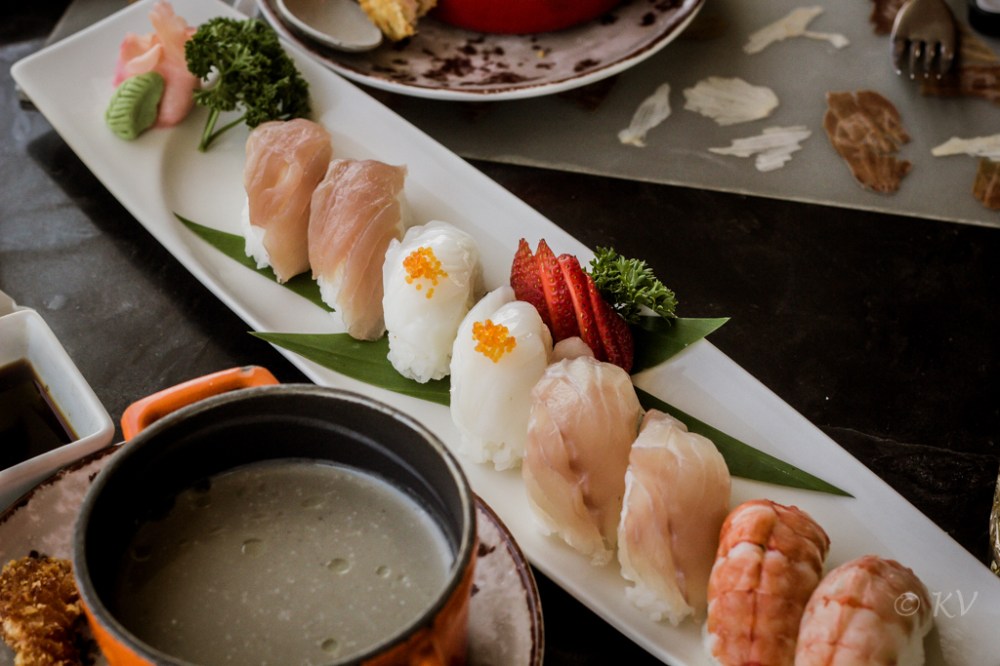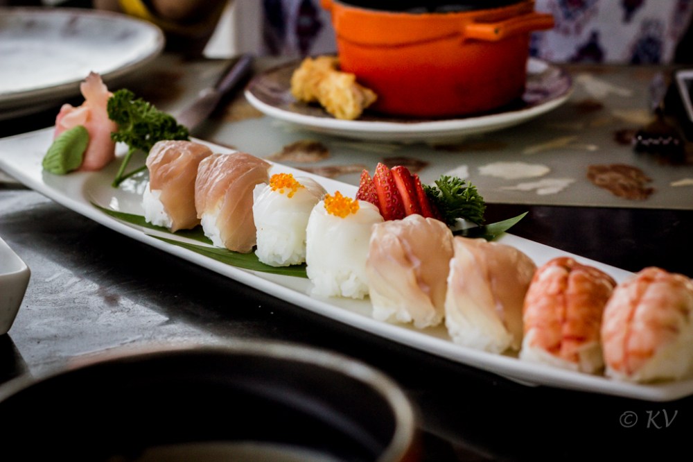 Now, I’m not a big sushi fan, and being a newly converted non-vegetarian, I wasn’t sure if I could handle raw fish. But I coped amazingly well, till I decided to smell my food (not a bright move, I know). In the end, I managed to keep it down… After all the Asahi had to do its thing, right!