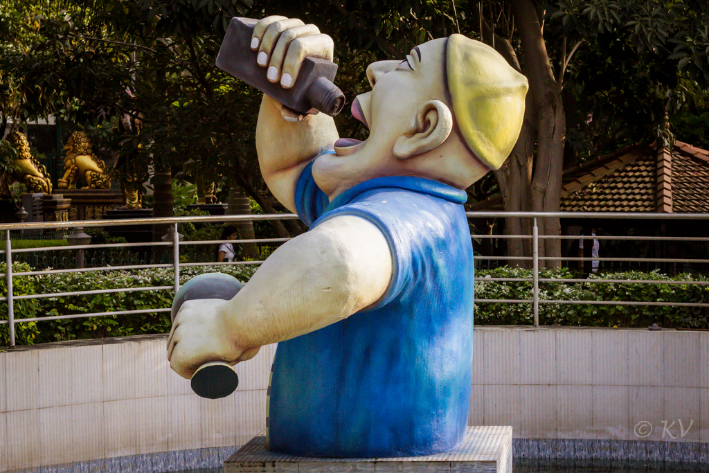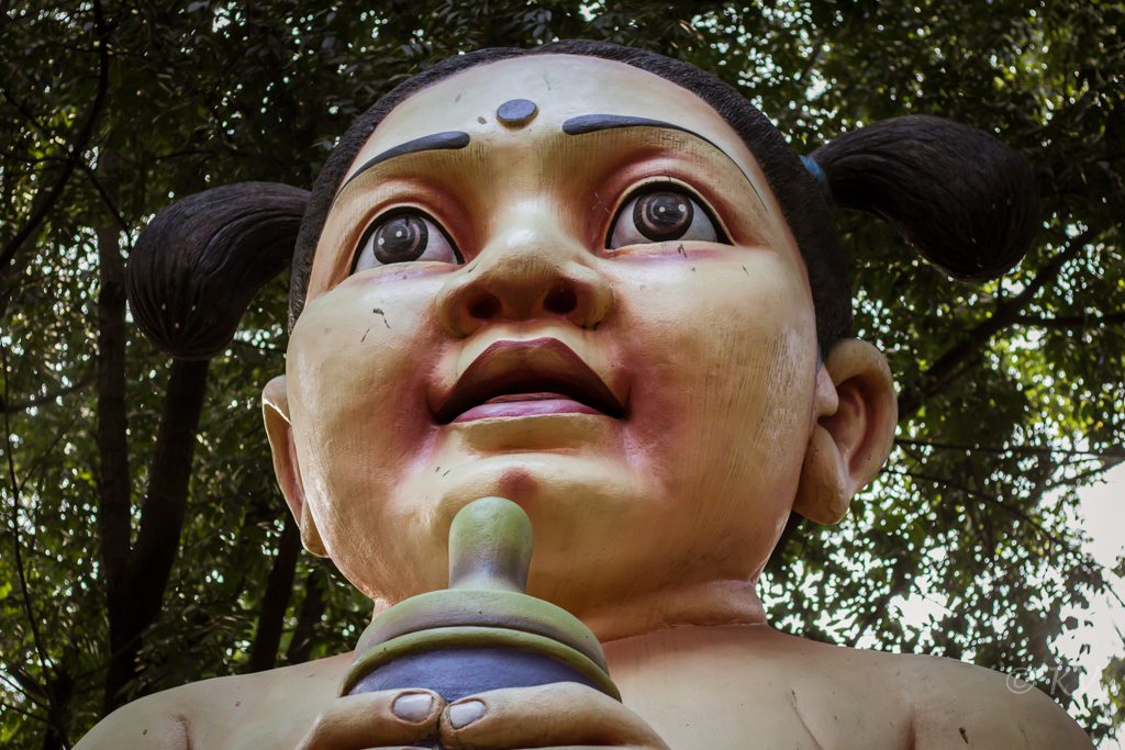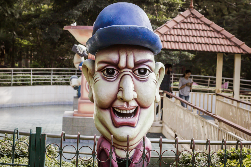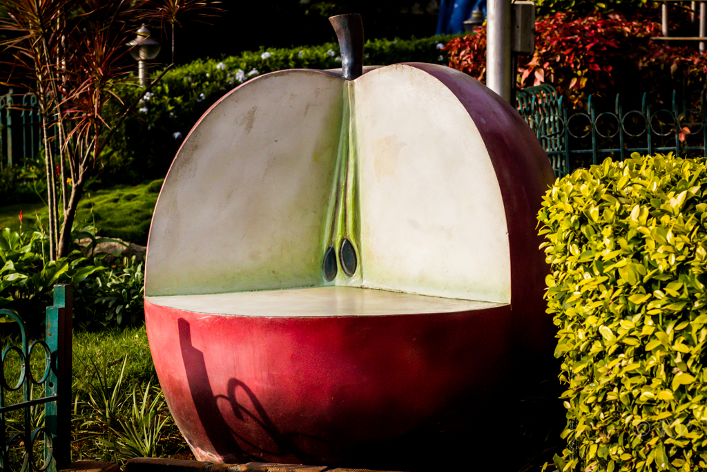 The park has workout zones for men and senior citizens, and a host of statues peppered around the park. Right from the apple, watermelon and daisy seats, you get to rest on the Hands that Built Karnataka. But the most interesting sculpture is that of a giant infant, which is also visible from the street. I usually see this monster on my way back from the airport in the wee hours of morning, when I travel back to Bangalore. It manages to spook me out every time but it is quite nicely made. Could’ve been a bit smaller though.