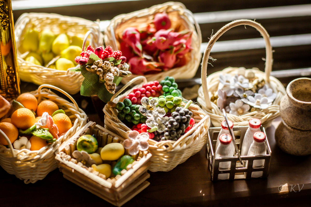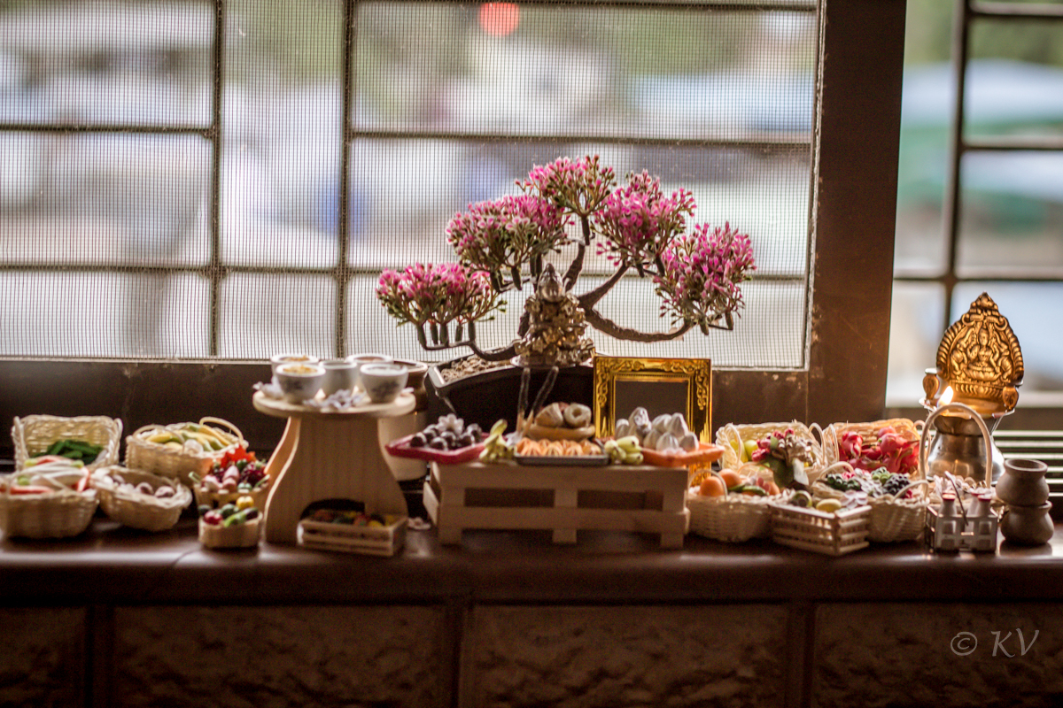 Vishu, and Tamil Puthandu are the start of the Solar calendar in the two states of Tamil Nadu and Kerala. As my father is originally for the border of both states, we observe both festiviteis at our home. For Vishu, the celebration involves setting up a Vishukanni. In Malayalam, kani translates to “that which is seen first”, so is typically the first thing you see on the Vishu morning. We welcome spring with an array seasonal produce, which comprises fruits, vegetables and grains, gold, coconuts, sweets, a lamp and a mirror. Typically, it is the celebration of Lord Vishu, but we have Annapurna devi in the thick of the action. She is the goddess of food and nourishment. The day usually had a lip-smacking spread with something sweet, savory, salty, bitter, spicy and tangy. It depicts the ups and downs of life in general. Since we are in the middle of a very gloomy situation, I decided to make a rather elaborate set up with my minis. I have everything that I need, and I believe it is the best time to be thankful and grateful for the abundance of all things peaceful in my life.